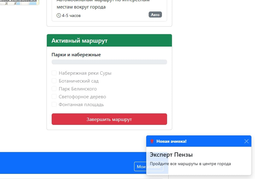 Создание минимального жизнеспособного продукта с базовым функционалом: выбор маршрутов, аудиогид, система достижений